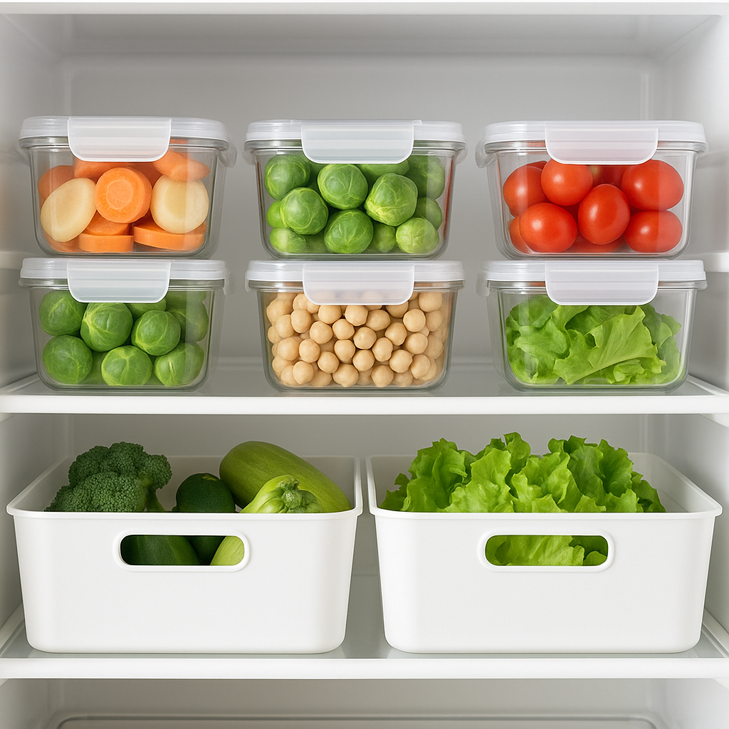 정리를 도와주는 수납용품이 많지만, **투명 플라스틱 수납트레이·밀폐용기·지퍼백**은 기본입니다.(정말 중요한 것은 버릴 것은 다 버린 뒤에 정돈을 하기 위해서 꼭 필요한 수납용품만 구매하는 것입니다. 무턱대고 사다가는 수납용품도 정리해야 할 쓰레기가 됩니다.) - 동일한 크기의 용기를 쓰면 쌓기 쉽고 공간 활용이 높아요. - 냉장고 문 쪽에는 얇은 바구니나 트레이를 두어 병·소스류를 정리하면 문 닫을 때 걸리는 일이 줄어요. - 지퍼백은 특히 냉동실에서 남은 반찬이나 자투리 채소 보관에 유리해요. 수납템이 많다고 좋은 게 아니라, 내 생활패턴에 맞는 2-3가지로 정리해서 계속 쓰는 게 핵심이에요!